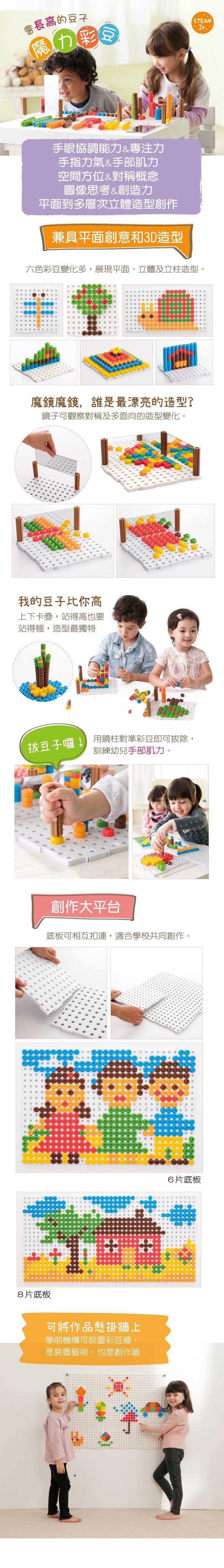 包羅萬象的彩豆遊戲,平面2D、立體3D,加入鏡子更提升創意等多元學習。
