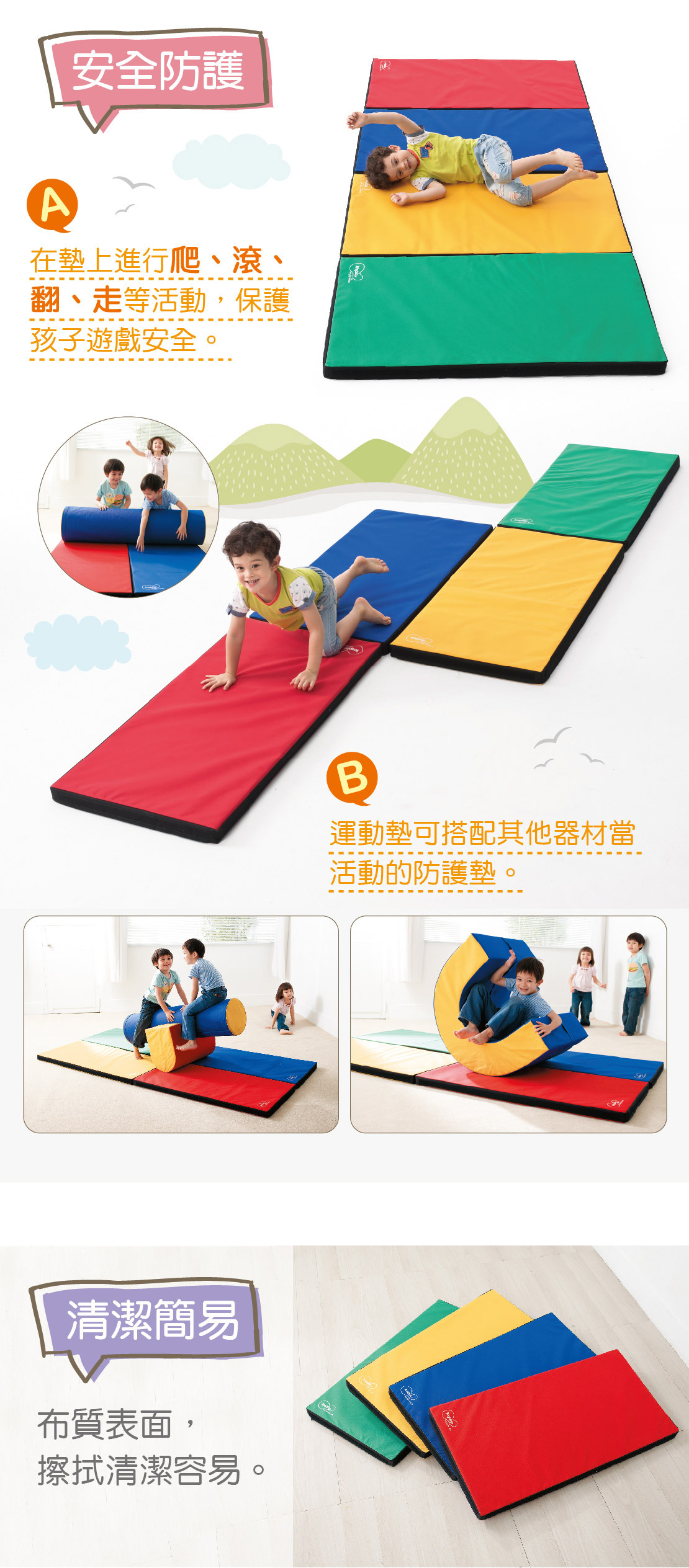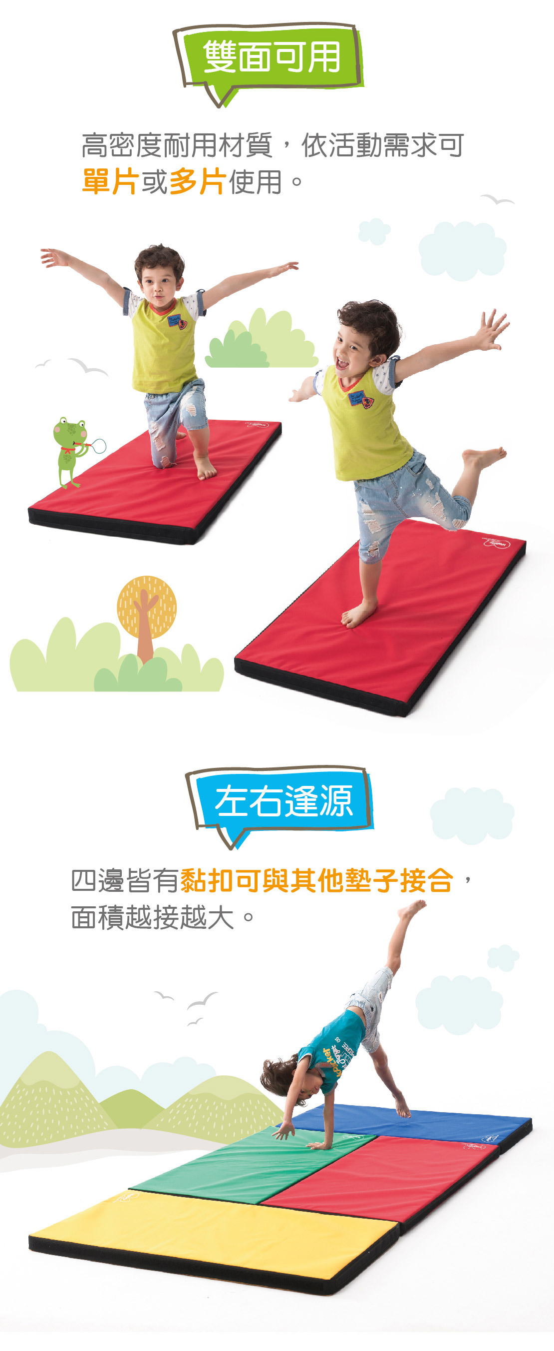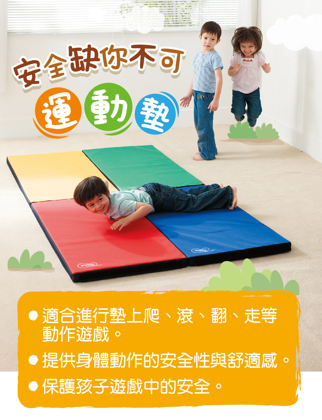 可互相接黏的地墊,隨場地或活動調整,讓孩童遊戲空間更安全。
