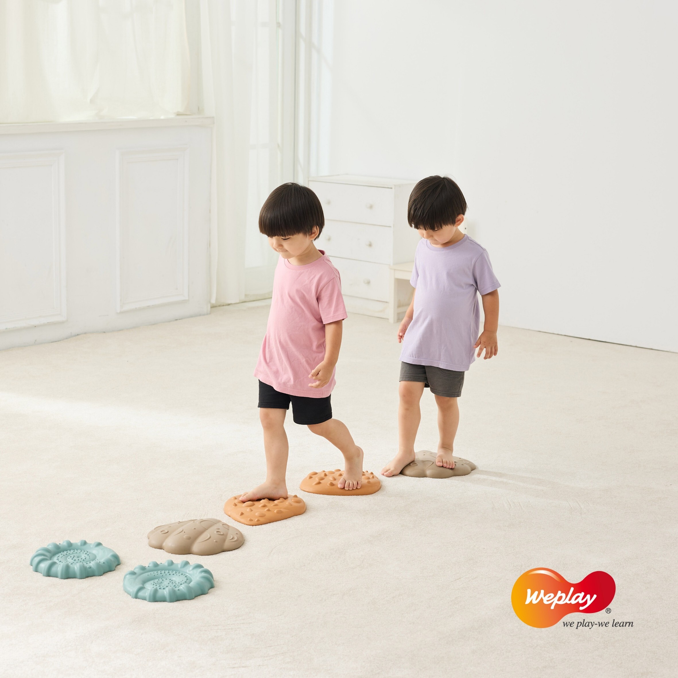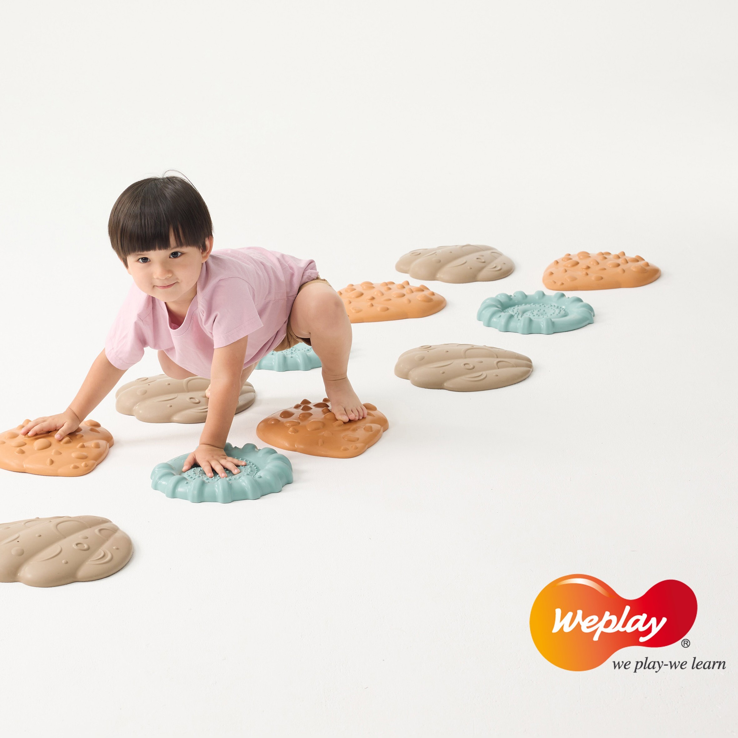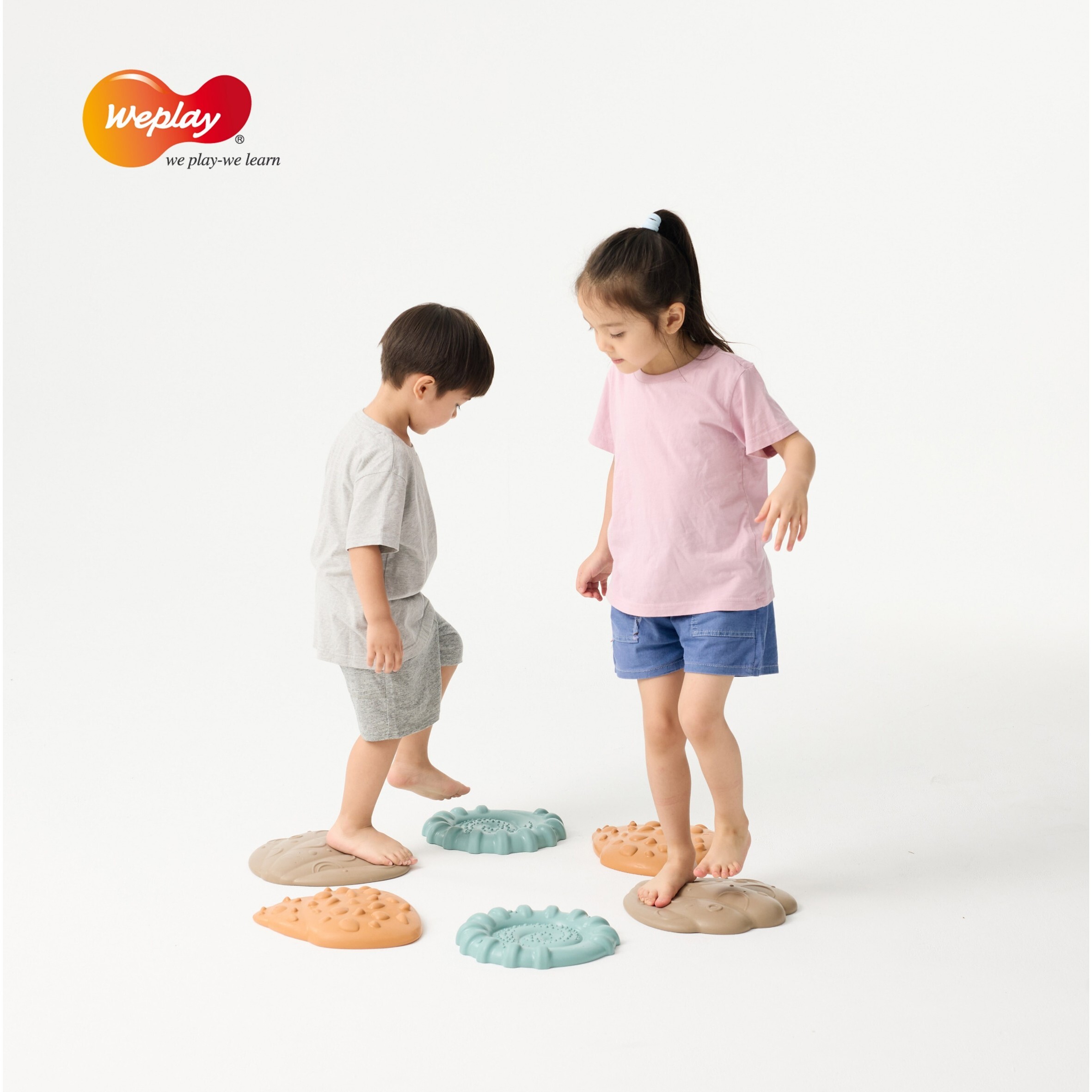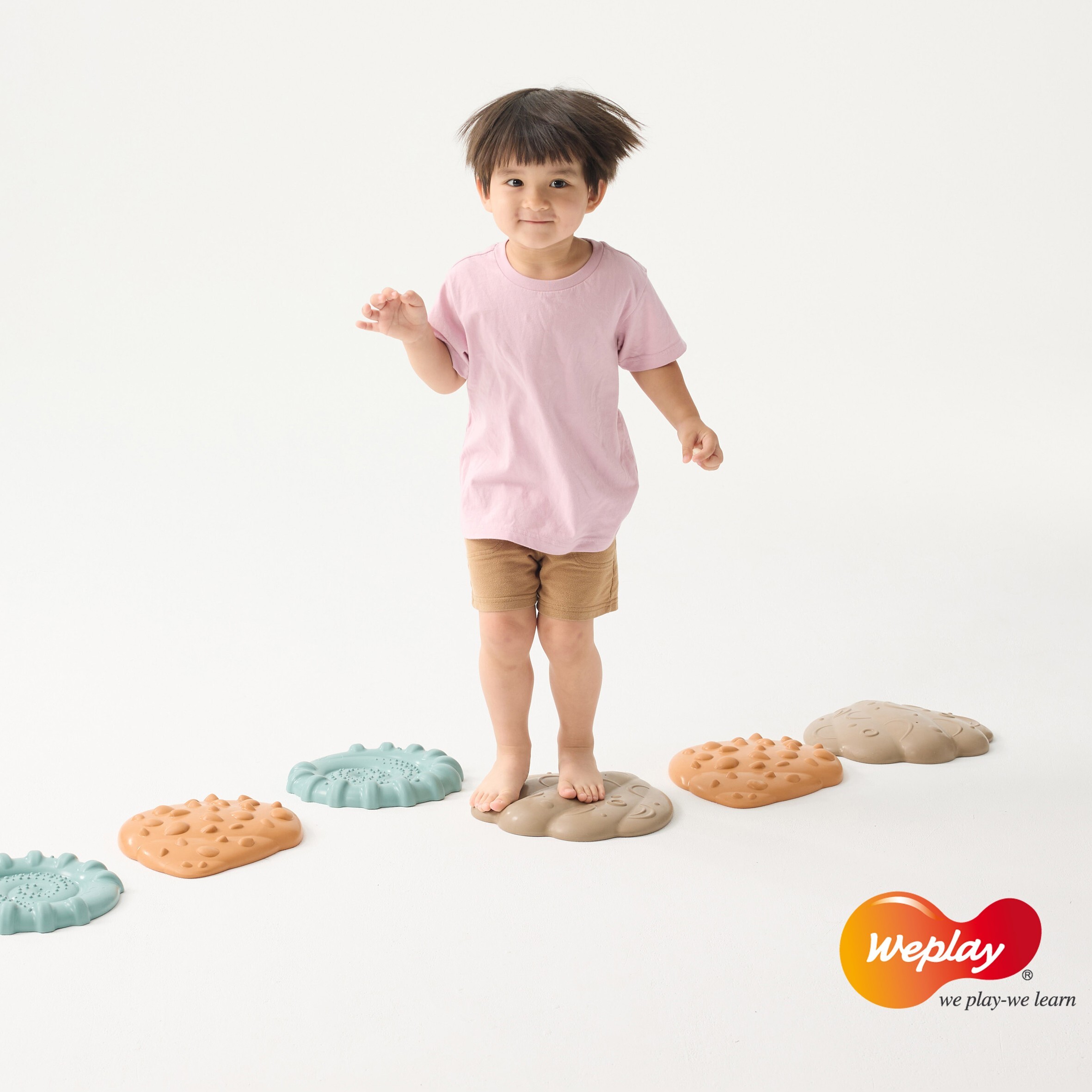 • 吸睛的貝殼造型,低矮高度適合作為學步兒的第一組平衡踏石!