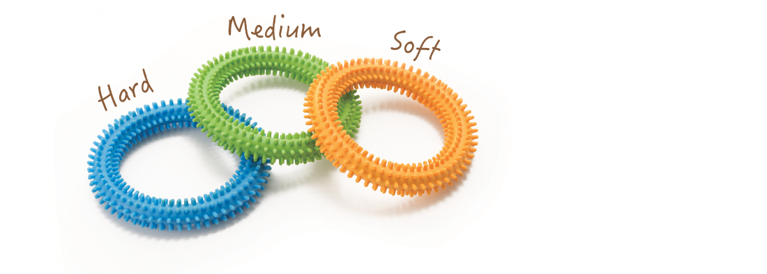 WeplayTwisters are designed to provide tactile stimulation and improve circulation.The set comes with 3 levels of resistances, each in a different color, whichgradually helps users grasping, twisting, and squeezing abilities. The tactilesurface enhances the sense of touch. This exercise promotes flexibility of thewrist joints.