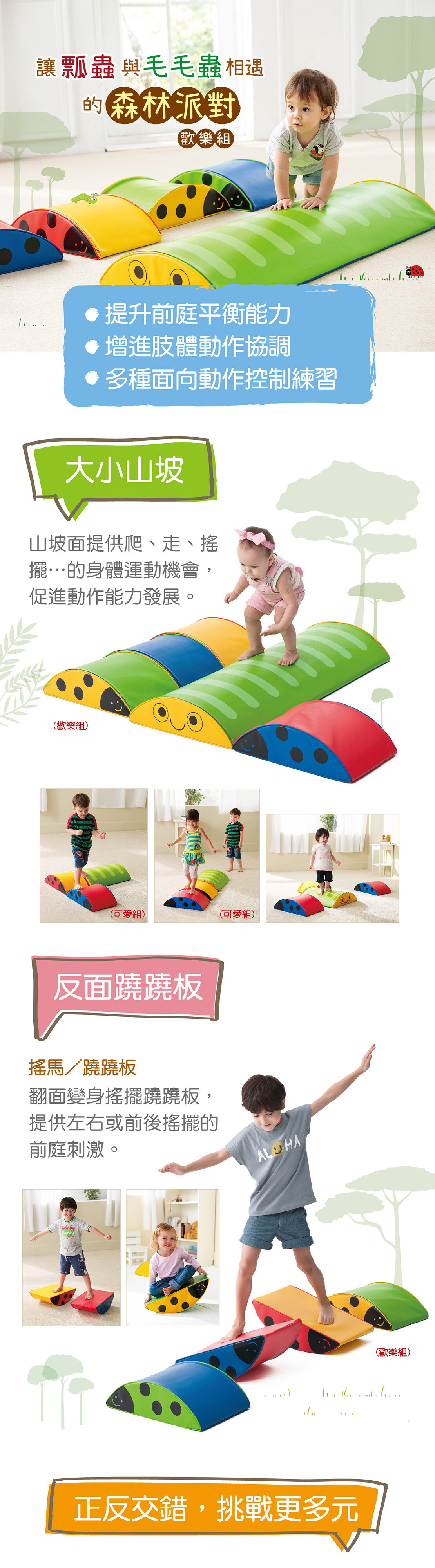 透過搖擺能提高前庭平衡刺激,促進孩子動作能力的逐步發展。