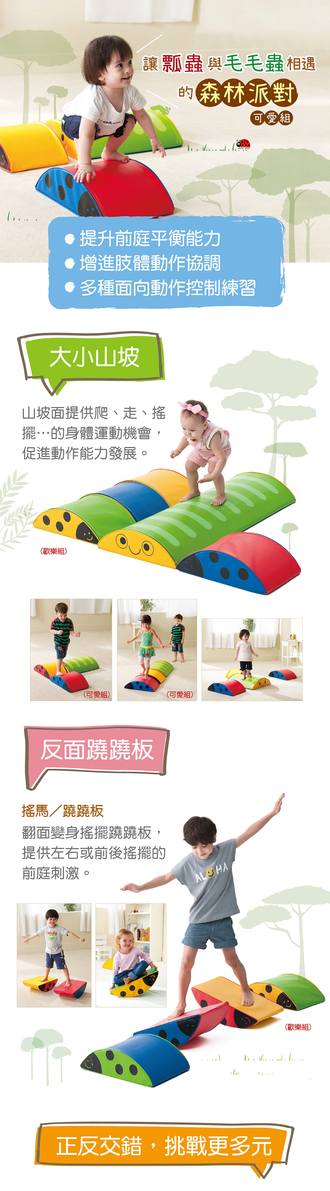 透過搖擺能提高前庭平衡刺激,促進孩子動作能力的逐步發展。